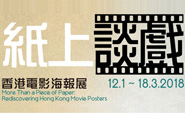 「紙上談戲‧香港電影海報展」展出近一百張由六十年代至近年的各類型電影海報,包括《跨鳳乘龍》(1959)、《猛龍過江》(1972)、《山狗》(1980)、《英雄正傳》(1986)、《賭俠》(1990)、《幽靈人間II鬼味人間》(2002)、《豪情》(2003)、《鬼域》(2006)、《奪命金》(2011)和《桃姐》(2012)。