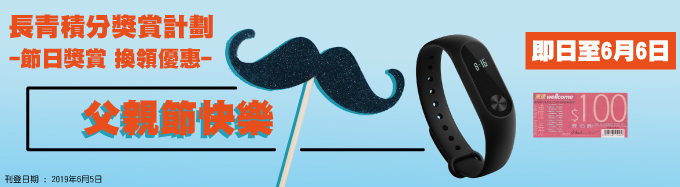 長青積分獎賞計劃特推出節日獎賞,讓各位孝順子女可以優惠積分換領實用的禮物,送贈予勞苦功高的父親。優惠換領禮品包括現金禮券,讓您可以隨心購買用品贈送予爸爸;小米手環2,協助您的父親輕鬆計步、查看時間和心率,時刻關注健康;八吋平板電腦保護套,可以保護平板電腦之餘,也能放置隨身物品,方便攜帶。