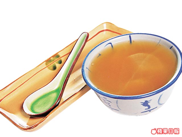 用廚房抹紙包住冰塊,然後在湯面上輕抹,油脂一遇冷會凝固,就會黏在抹紙上。