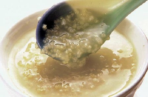 小米粥面層浮的一層黏稠物,形如油膏,俗稱「米油」,它營養豐富,滋補力強。古人說它「黑瘦者食之,百日即肥白。以其滋陰之功,勝於熟地」。《隨息居飲食譜》更謂﹕「米油可代參湯。」