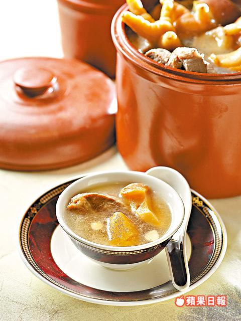 老火湯水令人可於濕冷的天氣暖暖胃,而可健脾的蘋果用作煲靚湯,效果更是相當清甜,配合可去濕的無花果,可滋陰的螺頭,令湯水更添回甘味道! 難度:★★ 時間:2小時20分鐘 份量:4人 材料: 雪梨2個、蘋果1個、無花果3顆、鮮螺頭4両、豬展8両、雞腳6隻、陳皮4両、薑1片、鹽半茶匙、糖3茶匙、水10碗 做法: 1.豬展切件後汆水;螺頭、雞腳分別汆水,皆備用。 2.無花果洗淨;蘋果、雪梨各切開6份,去核備用。 3.將所有材料煲2小時即成。 資料來源︰蘋果日報2013年02月27日 0 0 0 書籤 留言 (0) 登入即可留言