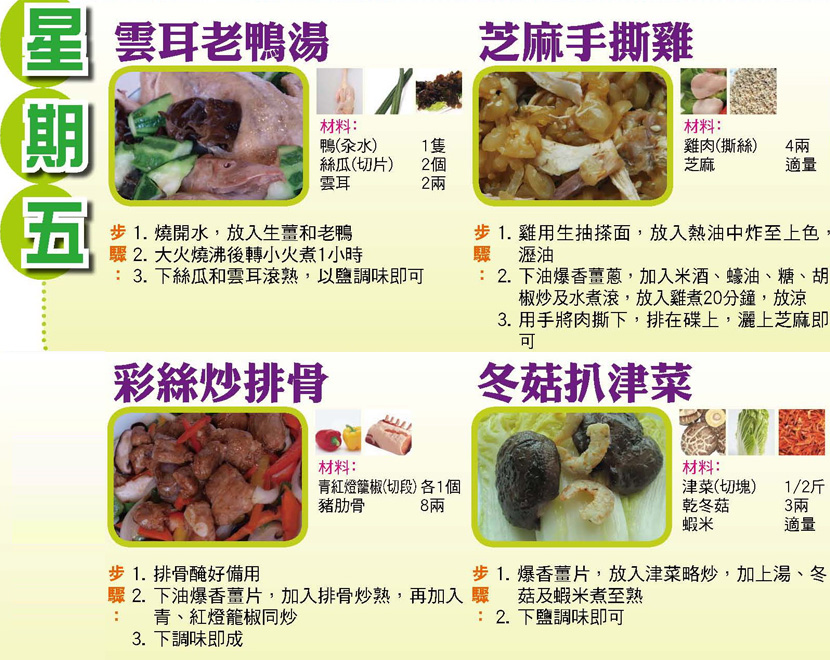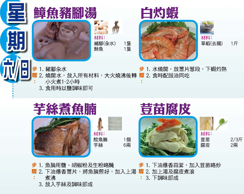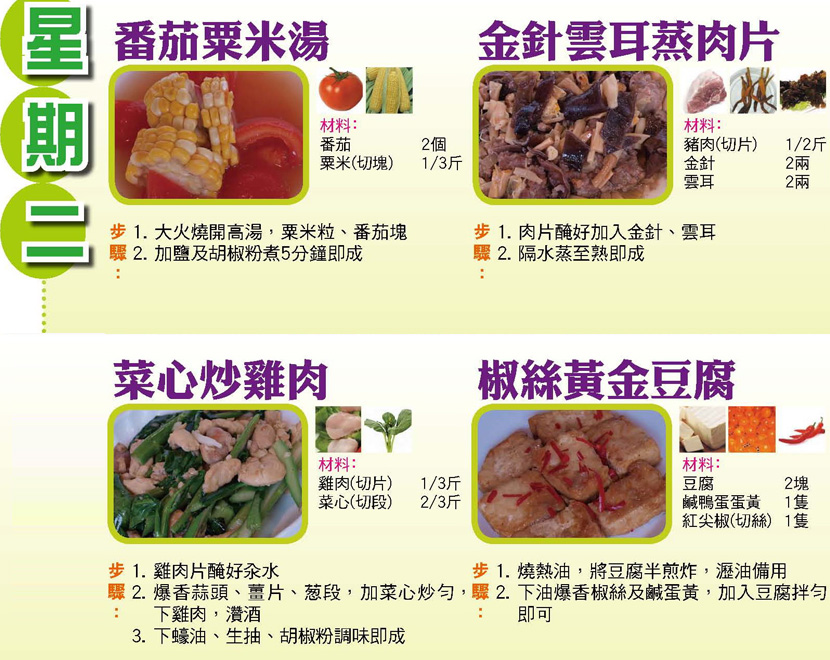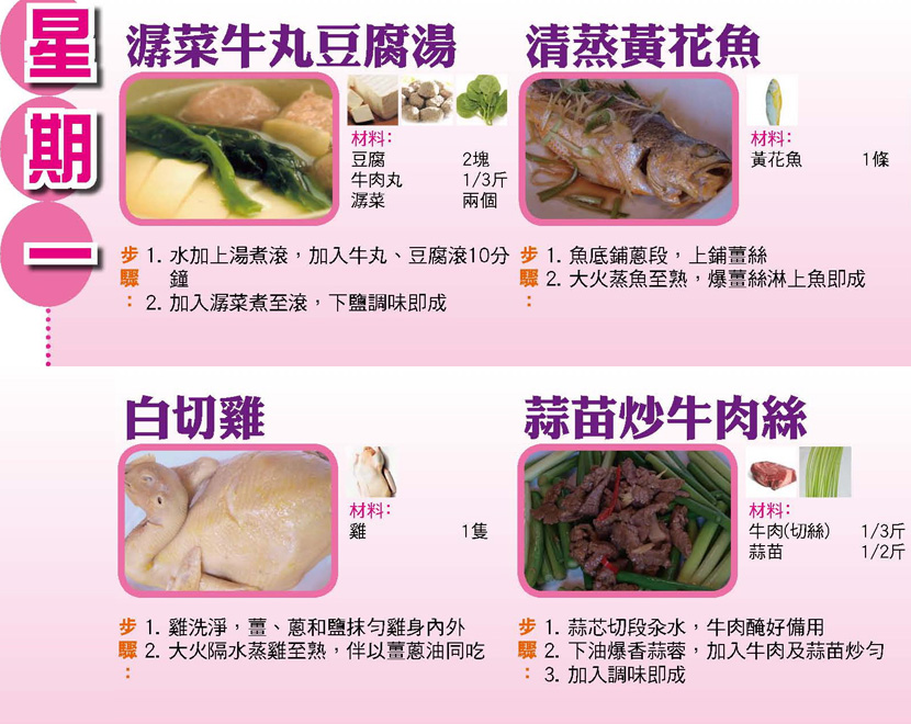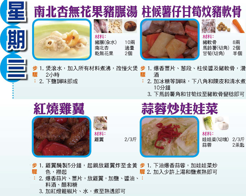 本週每日三餸一湯食譜推介: