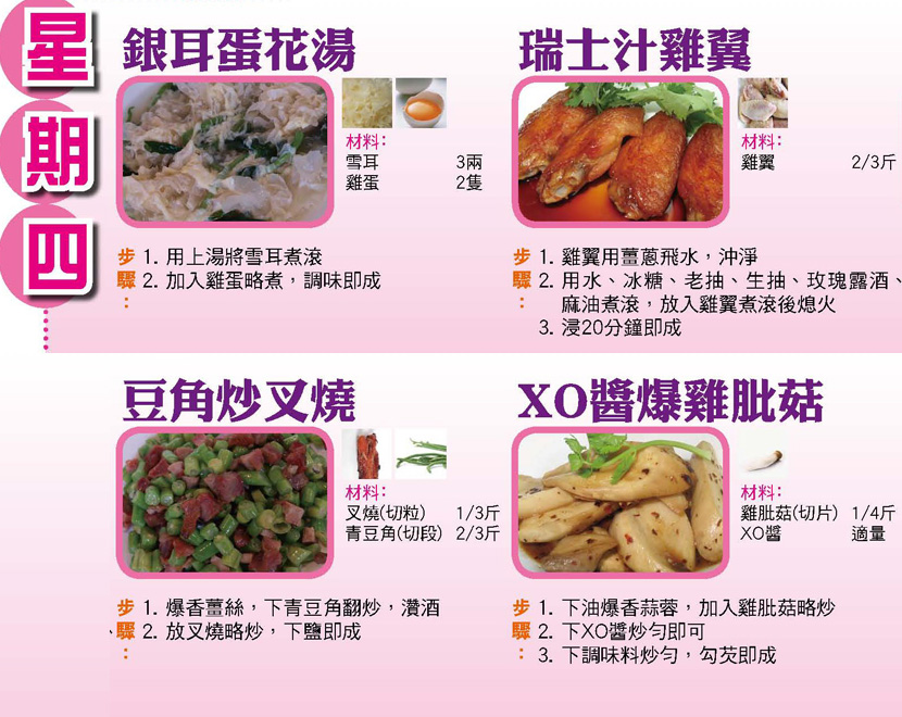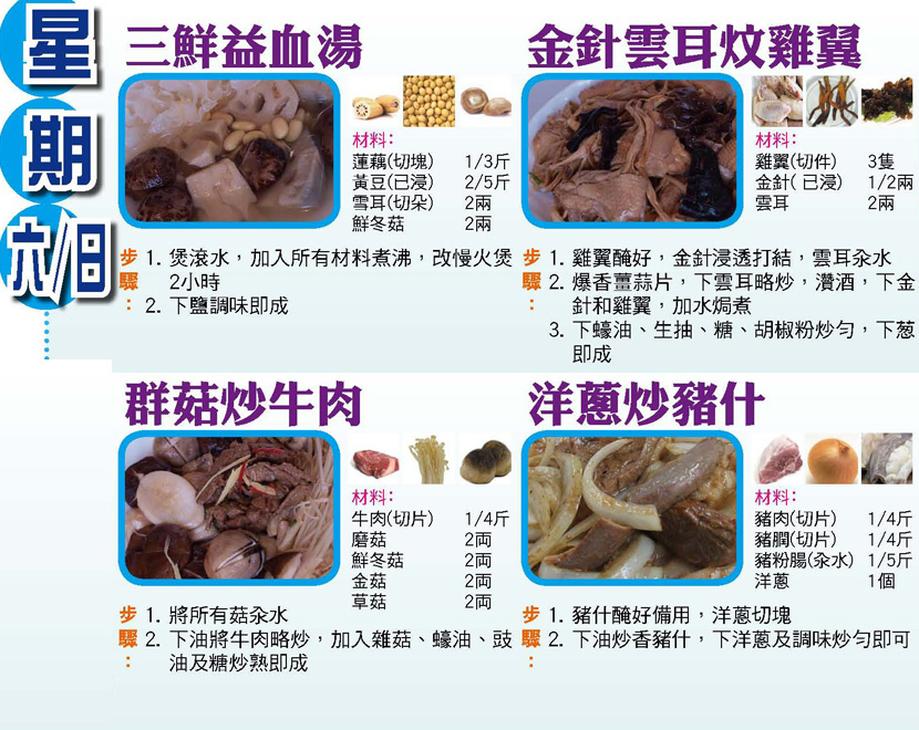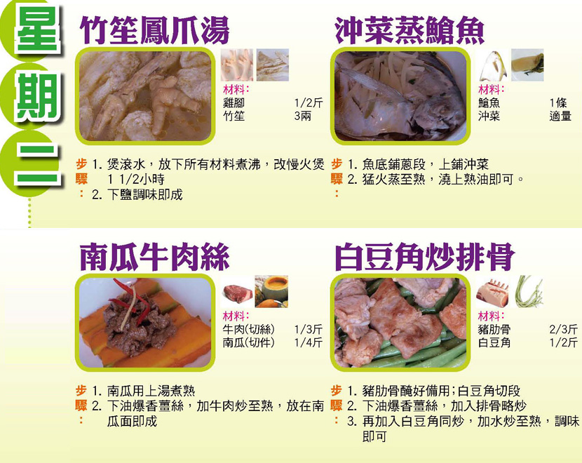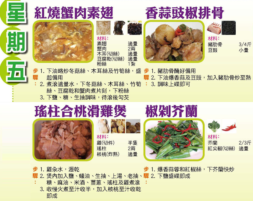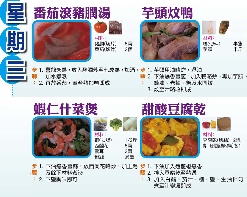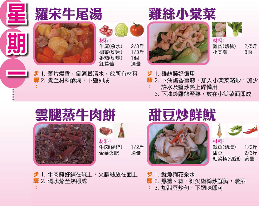 本週每日三餸一湯食譜推介: