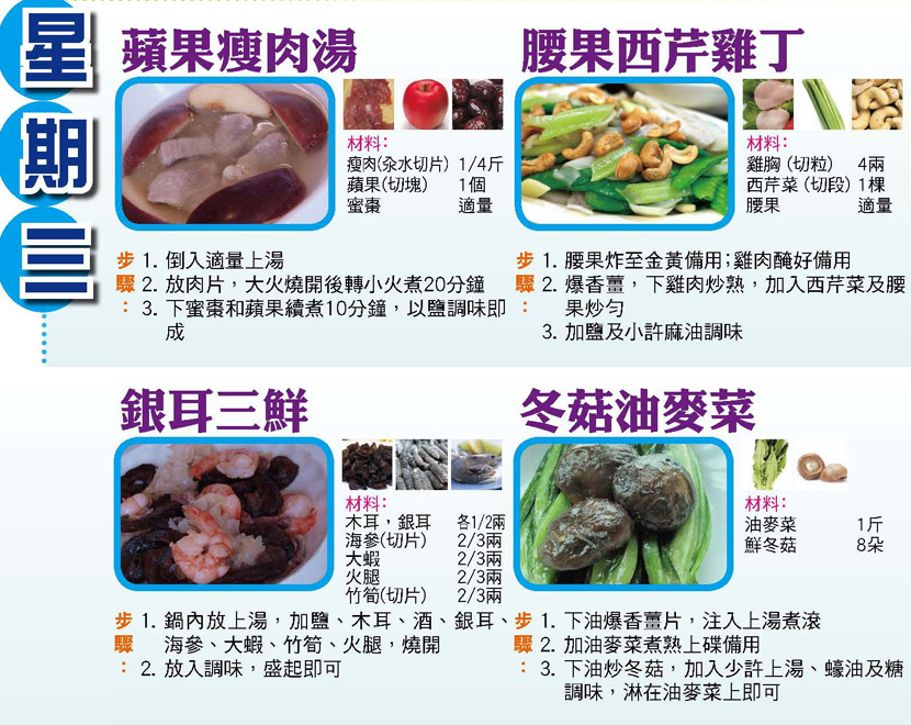 按此可閱覽英文、菲律賓文及印尼文食譜