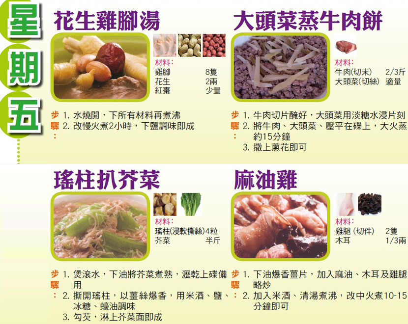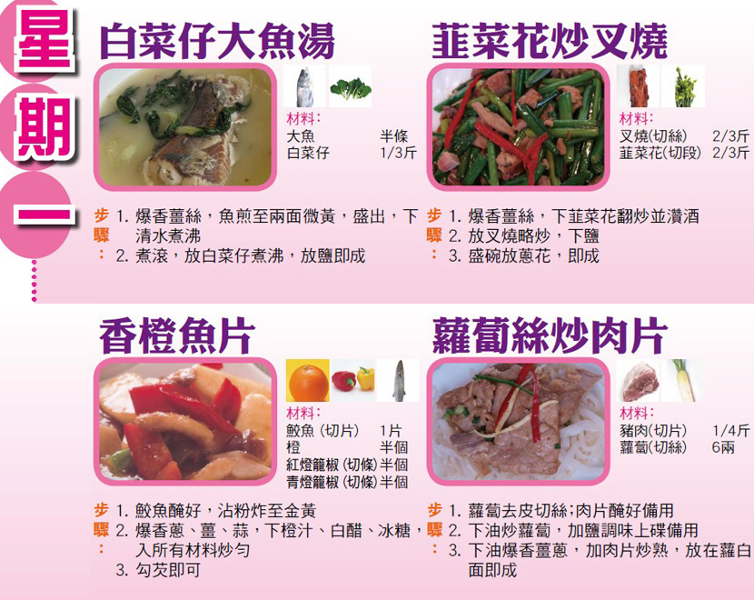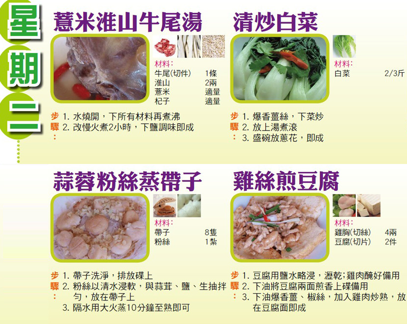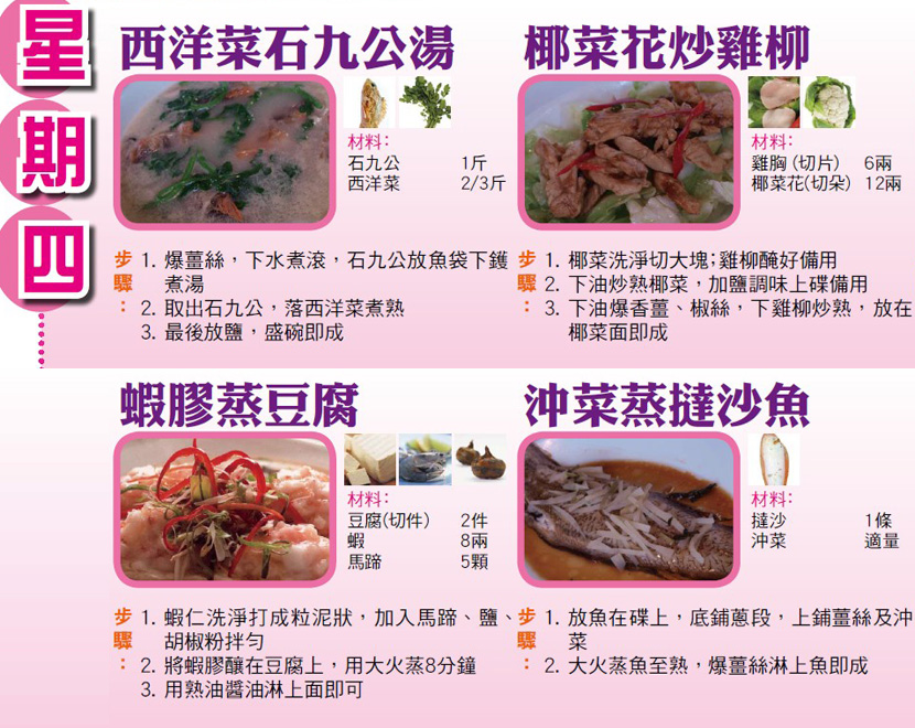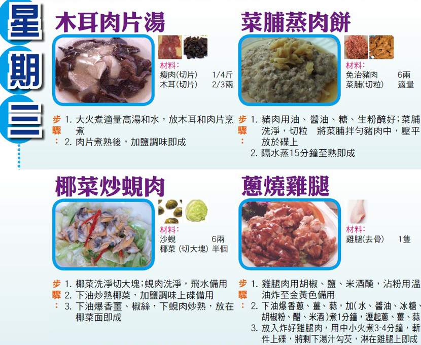 本週每日三餸一湯食譜推介: