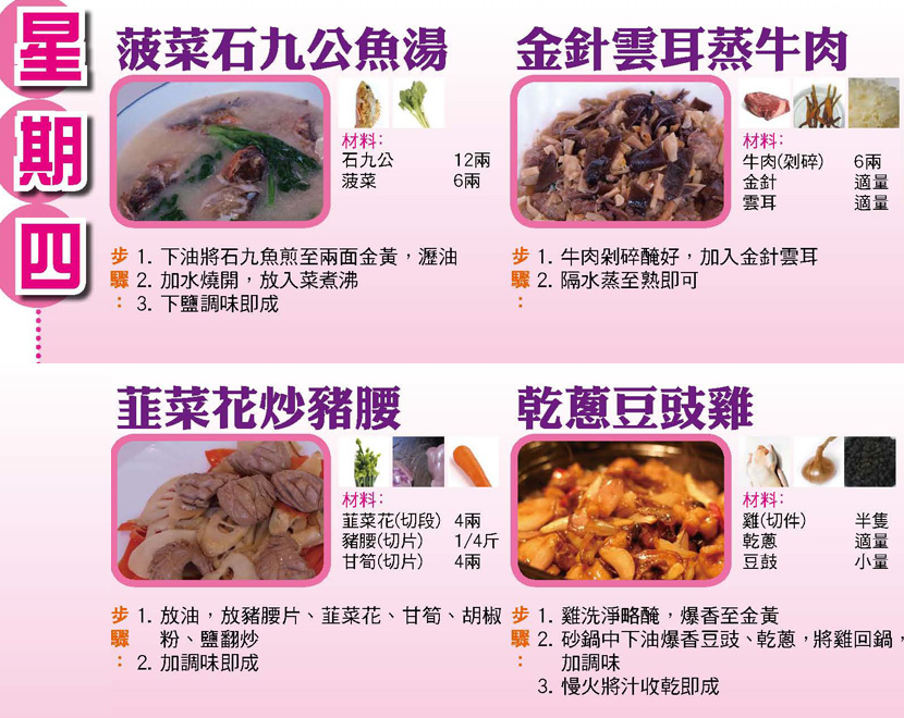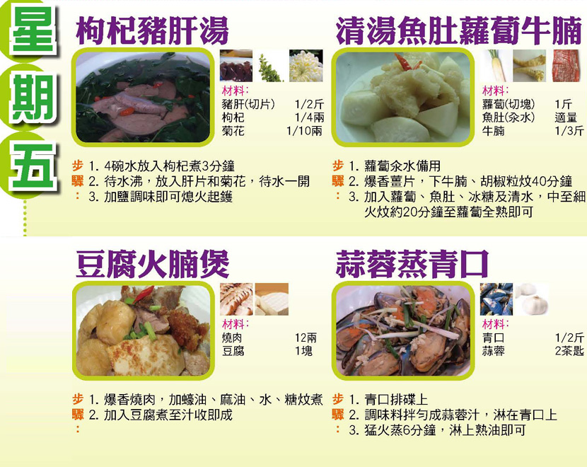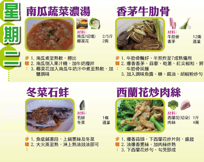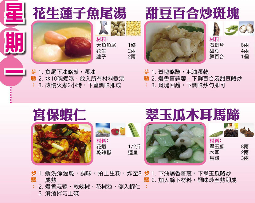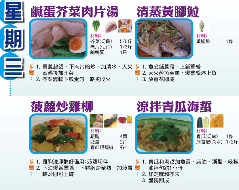 本週每日三餸一湯食譜推介:
