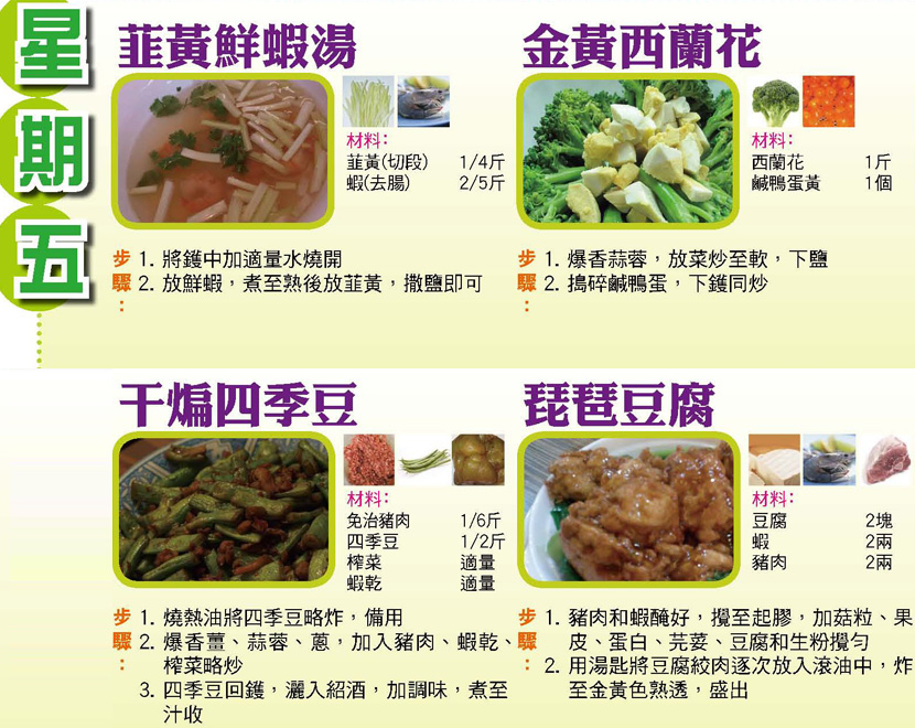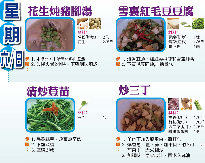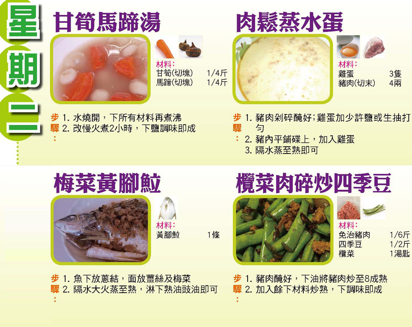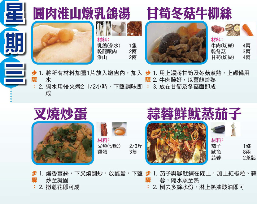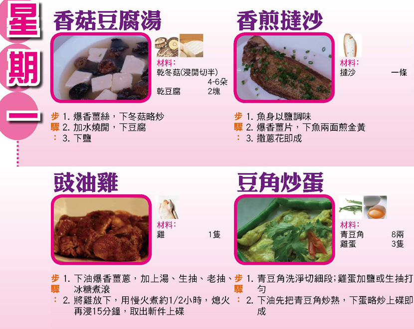 本週每日三餸一湯食譜推介: