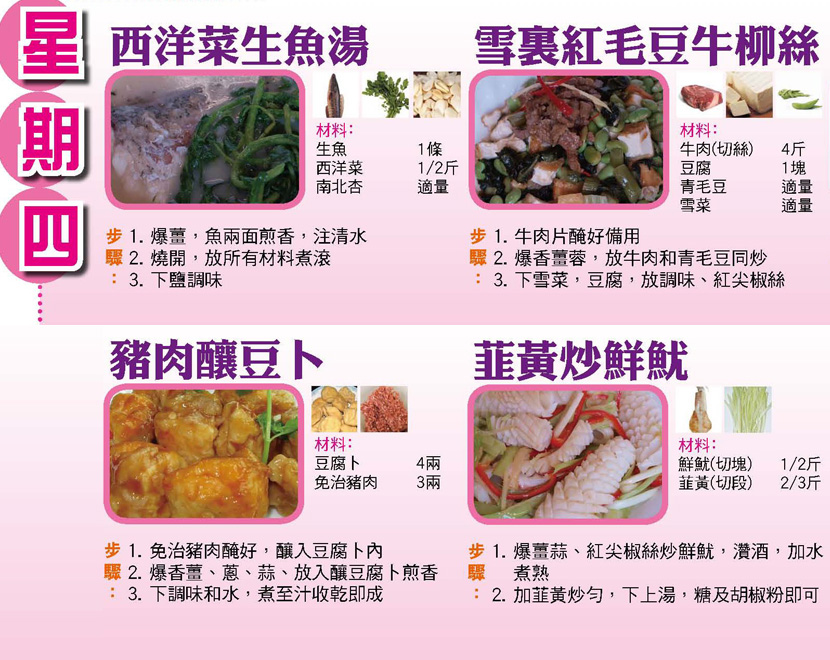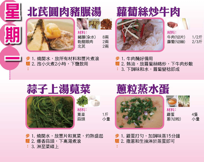 本週每日三餸一湯食譜推介: