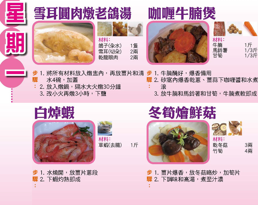 按此可閱覽英文、菲律賓文及印尼文食譜