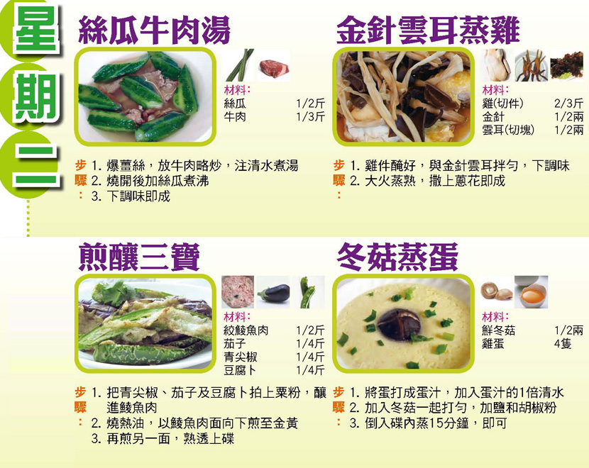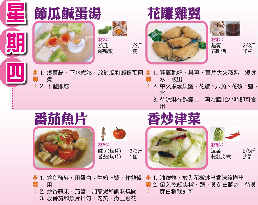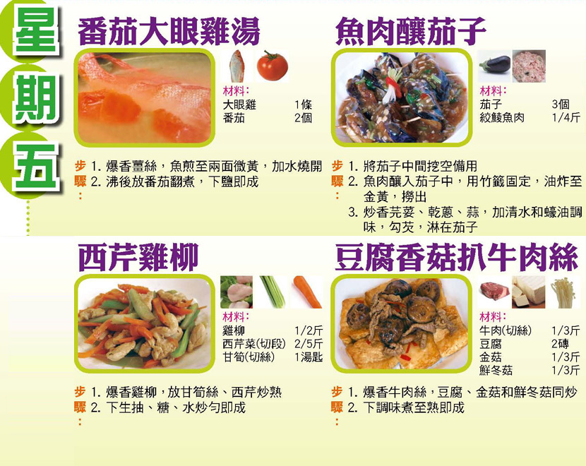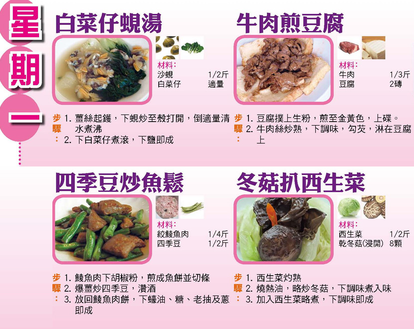 本週每日三餸一湯食譜推介: