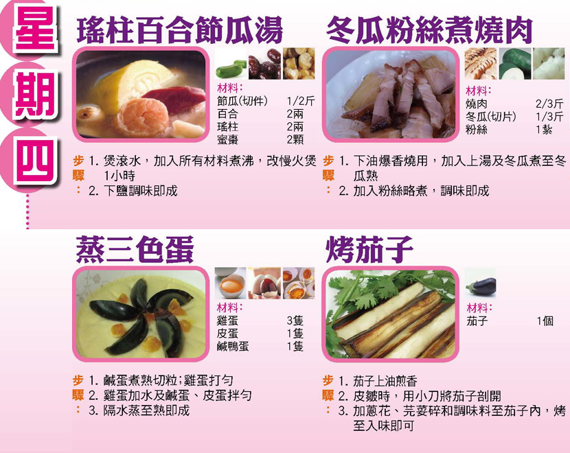 按此可閱覽英文、菲律賓文及印尼文食譜