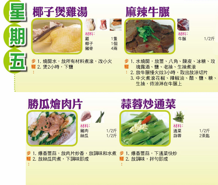 按此可閱覽英文、菲律賓文及印尼文食譜