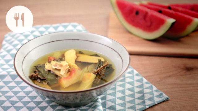 針對這狀況,彭醫師建議特別是在戶外活動過後,可以飲一個清暑益氣湯,「能解暑、去熱、補氣,和補充人體水份。」補氣的成份有花旗參,而解暑的食材是西瓜翠衣,就是就是西瓜吃掉紅色果肉剩下白色部份,用來煲湯一樣有消暑作用。