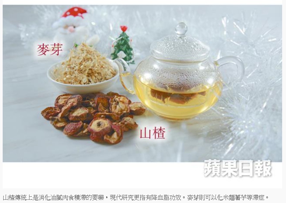 山楂、麥芽是中醫典型的「消食藥」,可以化解食物積滯,兩藥同歸脾、胃、肝經。現代研究指,山楂可以降血脂,所含脂肪酶可促進脂肪分解。呂醫師解釋道:「是可以的,但用量要大,大量卻易傷胃。而且不是人人都得。」中醫基礎理論指出,麥芽可以化米麵薯芋等的滯症,而山楂則能消化油膩肉食積滯。「吃蛇時會提供一些菊花,菊花本身是一種清熱的中藥,所以對吃蛇出現溫熱不適情況有用。」呂說:「如果出現食積化熱情況,我通常建議多喝水或吃水果,當造水果來說,雪梨具有很好的清熱作用。」
