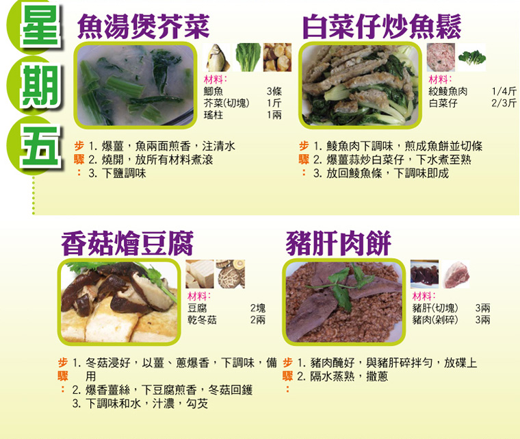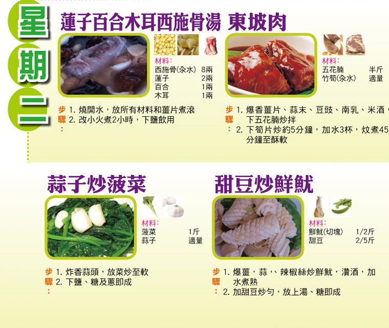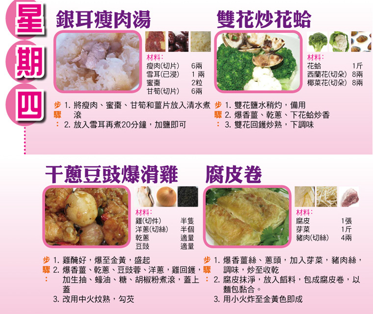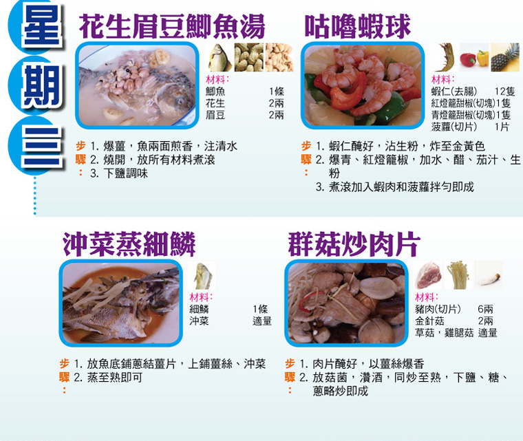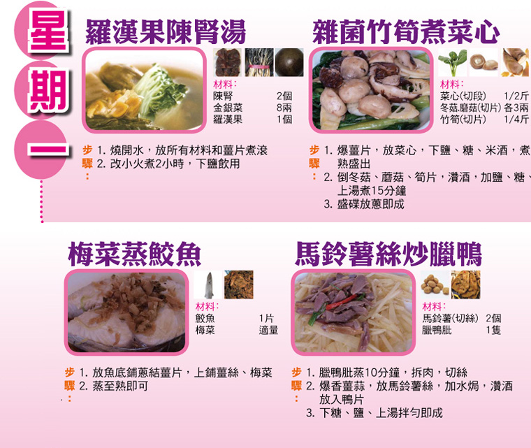 本週每日三餸一湯食譜推介: