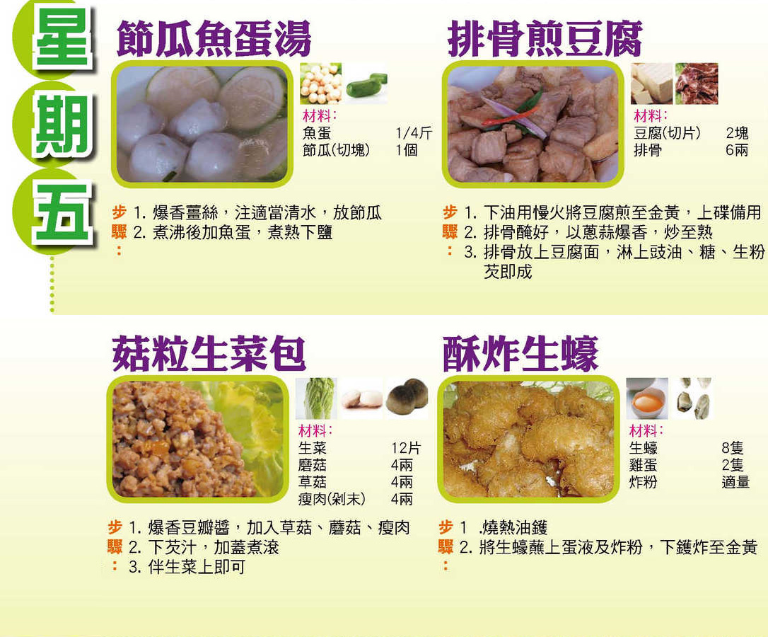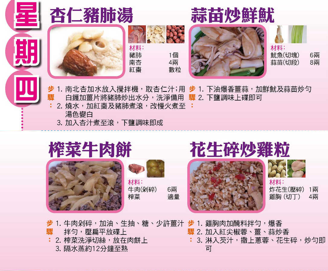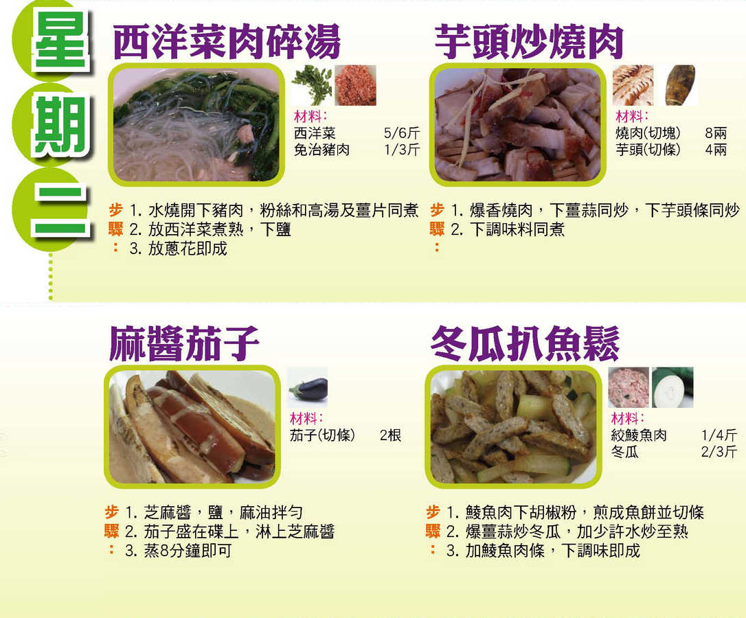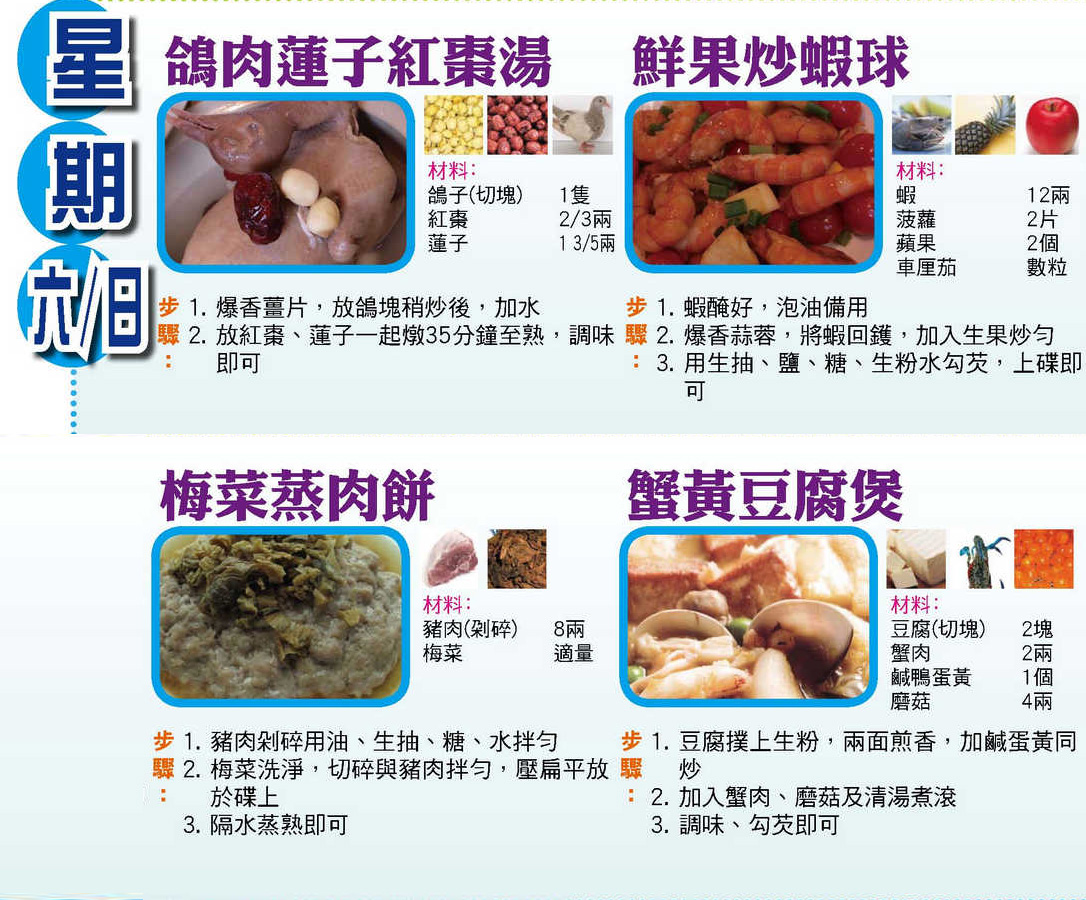 本週每日三餸一湯食譜推介: