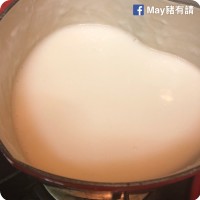 第4步 - 過濾後的杏汁加入約700毫升水份和適量冰糖煮溶,最後加入蛋白煮滾即成。