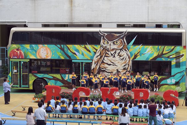 佛教慈敬學校早前利用九巴捐出的退役巴士,師生發揮創意,大力翻新,車身滿是色彩繽紛的圖畫,前方則設小舞台,雙層巴士頓成一大幅華麗的布幕。校方定期在此舉行歌舞、樂器演奏等活動,為學生增添另一表演場地。