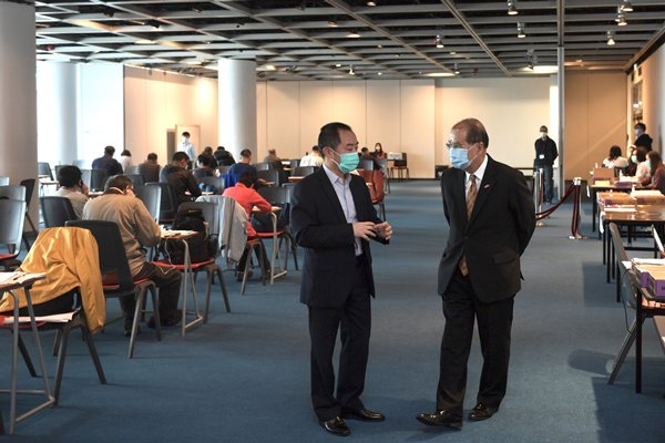 張建宗感謝中心人員,包括自願參與義務工作的退休公務員於疫情期間緊守崗位,為保障市民健康作出貢獻,與市民同心抗疫。