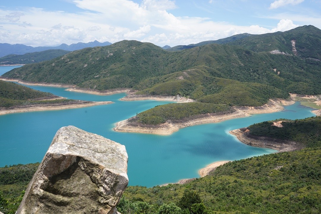由麥徑前往蠄蟝石頂的山路稍為模糊,但不難發現遠處聳立的一座巨石,只要朝著蠄蟝石方向走總不會走錯。站於蠄蟝石頂欣賞萬宜水庫的風光可謂美不勝收,眼前的湖光山色,令人陶醉。