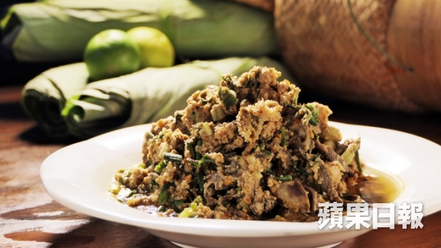 當地人有吃生肉的習慣,其中一道菜式名為Koi。在街邊檔看見當地人將生牛肉和生牛百葉攪拌,加入芫荽、葱、青檸和辣椒。這樣不算很特別,因為其他國家如韓國亦有生牛肉菜式,但檔主接下來加入一支新鮮牛血,整道菜頓時變得血淋淋,對我而言有點反胃,更遑論放進嘴裏。問過幾個當地人,他們就解釋吃生肉和牛血是為了新鮮,覺得煮熟會影響食物質感。他們還會以生豬肉和生魚炮製這道菜,過去就有報道指出,生食這兩種食物有機會感染寄生蟲。如果吃不慣生肉,可以考慮將相同的材料炒熟食用,炒肉碎名為Lahp,佐飯一流。
